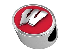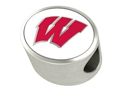 Wisconsin Badgers College Bead Fits Most Pandora Style Bracelets Including Pandora, Chamilia, Biagi, Zable, Troll and More. High Quality Bead in Stock for Immediate Shipping